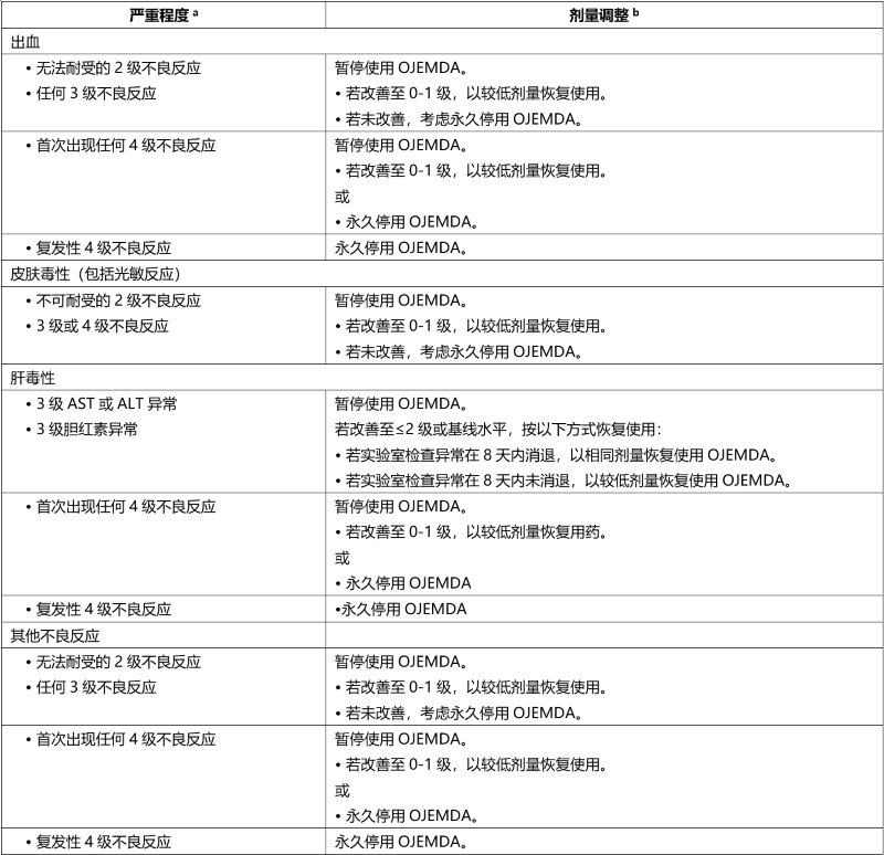 针对不良反应,本品的推荐剂量调整情况见表3。