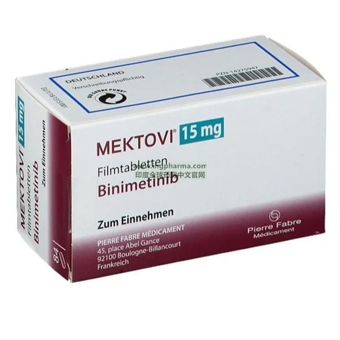 本品是丝裂原活化的细胞外信号调节激酶1(MEK1)和MEK2活性的可逆抑制剂。MEK蛋白是细胞外信号相关激酶(ERK)途径的上游调节剂。在体外,binimetinib在无细胞免疫测定中抑制细胞外信号相关激酶(ERK)磷酸化以及BRAF突变人黑素瘤细胞系的活力和MEK依赖性磷酸化, Binimetinib还抑制BRAF-突变小鼠异种移植模型中的体内ERK磷酸化和肿瘤生长。