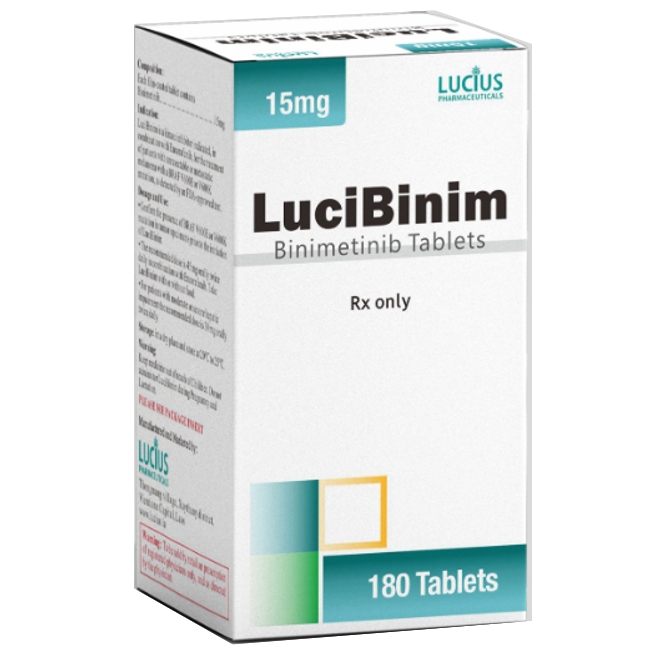 本品是丝裂原活化的细胞外信号调节激酶1(MEK1)和MEK2活性的可逆抑制剂。MEK蛋白是细胞外信号相关激酶(ERK)途径的上游调节剂。在体外,binimetinib在无细胞免疫测定中抑制细胞外信号相关激酶(ERK)磷酸化以及BRAF突变人黑素瘤细胞系的活力和MEK依赖性磷酸化, Binimetinib还抑制BRAF-突变小鼠异种移植模型中的体内ERK磷酸化和肿瘤生长。